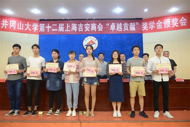 2006年,上海吉安商会为激励井冈学子勤奋学习,不断创新,在我校设立“卓越贡献”奖学金,每年捐赠3.6万元人民币(今年开始为5万元),用于奖励我校在创造发明、技术开发、科技竞赛中取得优异成绩的学生,引导和鼓励家乡学子刻苦学习、努力钻研、创新发展。该奖学金已连续发放十二年,获得了广大学子一致好评。(郭伟清)