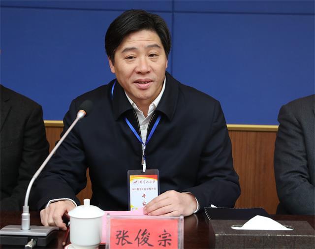 张俊宗代表专家组对本科教学工作审核评估进行了说明,介绍了本科教学审核评估的目的、意义、内容、方式方法、工作要求以及工作纪律。他指出,评估专家组将坚持“以评促建、以评促改、以评促管、评建结合、重在建设”的方针,在前期审阅学校自评报告和数据报告的基础上,紧密围绕审核评估体系,采取听课、走访、深入访谈、抽查试卷和毕业论文等方式,对学校本科人才培养工作进行一次全面细致的现场考察,并对照评估方案进行把脉诊断,提出意见和建议,以推动学校的建设与发展。