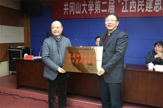 11月29日上午,第二届“江西民建思源爱心助学金”发放仪式举行,江西省政协副主席、民建江西省委主委孙菊生,民建江西省委副主委、江西省政协副秘书长赵波,江西省民建同心扶贫基金会会长李光荣,校党委书记彭涉晗,党委副书记、校长曾建平,副校长左继生,党委常委、副校长陈小林等出席助学金发放仪式并为40名受助贫、特困生颁发助学金。彭涉晗代表井冈山大学向江西民建同心扶贫基金会赠送捐资荣誉锦牌,赵波、曾建平分别讲话,左继生宣读获资助学生名单,陈小林主持仪式,获资助学生代表、医学部中医15本1班杨银同学发了言,表达了对国家、社会和学校关心帮助自己的感恩之情。