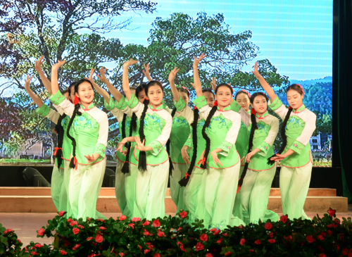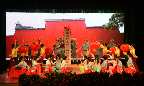 演出结束后,周金堂、曾建平、高益庆等领导上台慰问演职人员,庆祝演出圆满成功并合影留念。