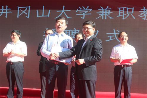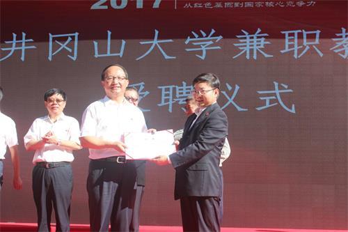 校长曾建平为吉安市人民政府市长王少玄颁发聘书