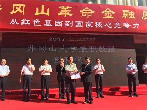 签约仪式前,举行了井冈山大学兼职教授授聘仪式,中国人民银行原副行长马德伦、吉安市人民政府市长王少玄、红岭控股董事长周世平受聘为我校兼职教授,曾建平为他们颁发了聘书,三位教授将共同为井冈山大学金融学科的发展贡献力量。(校办)