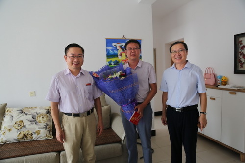 在第33个教师节来临之际,9月6日至8日,校领导彭涉晗、曾建平、肖长春、左继生、桂国庆、龙进、吕玉华、史胜平、陈小林、黄俭根、肖宜安和有关部门负责人一道,分头走访慰问了优秀教师代表、获得国家基金项目教师代表、新进教师代表、列入省“百千万人才工程”教师代表、退休教师代表等共22人,向他们致以节日的问候,并祝愿全校教职工节日快乐,身体健康,工作顺利。 校领导和受到慰问的每一位教师亲切交谈,关切地询问他们的工作和生活情况,听取了他们对学校发展所提出的建议和意见,感谢他们为学校建设与发展所作出的贡献。校领导勉励他们放眼未来,积极进取,希望广大教师在教书育人岗位上努力奋斗,努力开创学校改革发展的新局面。