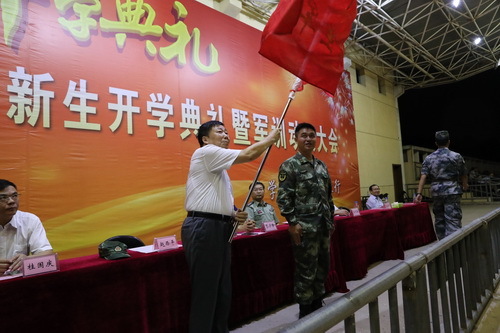 9月11日晚,学校隆重举行新生开学典礼暨军训动员大会。校党委书记彭涉晗出席,党委副书记、校长曾建平讲话,党委常委、副校长吕玉华向新生军训团授团旗,党委常委、副校长陈小林主持,武警吉安市支队参谋长赵西平作军训安排,校领导肖长春、桂国庆、史胜平、黄俭根等出席。学校有关职能部门负责人,各学院负责人,2017级全体班主任、辅导员,2017年新进教师以及2017级全体新生等约5000人参加了大会。