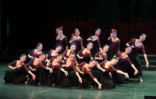 我校艺术学院大学生表演的群舞《送你一朵玫瑰花》