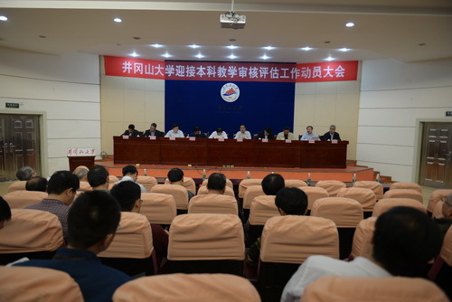 4月6日,学校召开本科教学审核评估工作动员大会,党委副书记、校长曾建平作动员讲话,在家的校领导肖长春、左继生、龙进、吕玉华、史胜平、陈小林、肖宜安、苗夺谦出席,党委常委、副校长黄俭根主持并介绍了学校迎接审核评估工作计划,教务处处长昌庆钟解读了本科教学审核评估工作的特点和要求,生命科学学院院长黄族豪作表态发言。学校审核评估工作领导小组和各工作小组全体成员,正处级干部以及各学院(部)党委书记、院长、党委副书记、分管教学工作副院长、教务科长、学生科长、各专业负责人等200余人参加了会议。 曾建平强调,要把握评估契机,狠抓问题整改。他指出,对于转型发展中的井冈山大学来说,本科教学审核评估既是一次考验,也是一次重要契机。我们要遵循“以评促建、以评促改、以评促管、评建结合、重在建设”的评估指导方针,通过突出内涵建设和特色发展,强化办学合理地位、人才培养中心地位和质量保障体系建设,全面提高本科教学水平和人才培养质量。