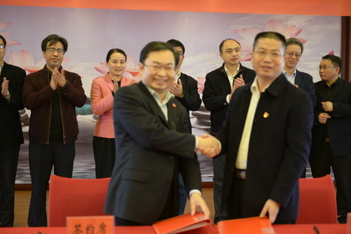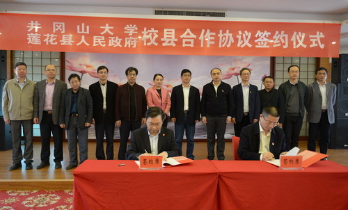 4月13日,我校与莲花县战略合作协议签订仪式在莲花县举行,党委副书记、校长曾建平与莲花县委副书记、县长张运来分别代表双方签署协议,莲花县委书记刘乡,我校党委常委、副校长龙进分别致辞,莲花县委副书记何超主持签约仪式,莲花县领导曾衍敏、童道雄、刘力亚等出席,我校有关部门、学院负责人参加了签约仪式。 龙进在致辞中指出,支持莲花县的发展是井冈山大学义不容辞的责任。井冈山大学的发展也离不开莲花县的支持与帮助,双方在科技、干部培养、文化教育发展、医疗卫生、三农服务、旅游资源开发保护等方面,都有广阔的合作前景。这次合作协议的签订,标志着双方合作进入了一个新的发展阶段,有利于充分发挥各自优势,整合资源,释放创新要素活力,增强校地协同创新能力,实现双赢发展。