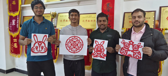 在留学生活动室,留学生正在挂灯笼、剪窗花、包饺子、写春联……大家分工合作,其乐融融。走访慰问结束后,廖岚一行来到了留学生活动中心,与30多名留校留学生一起交流互动,祝福留学生们今后的日子里心想事成、大展宏图,希望他们今天以井大为荣,将来井大以他们为荣。