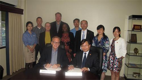 曾建平与加州浸会大学外事副校长Linamen博士签订合作协议