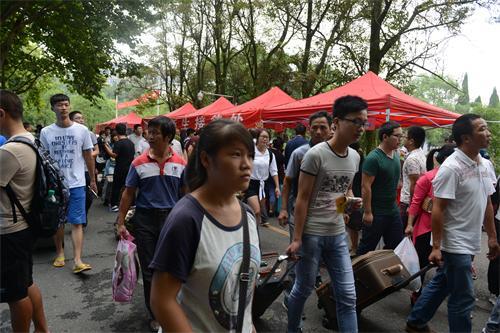 与往年相较,今年我校的迎新工作有几个亮点。一是为新生及家长提供从接站到入住宿舍全程服务的近200名大学生志愿者中,大部分志愿者是由学生党员组成。人文学院、外国语学院、生命科学学院等学院还结合当前正在开展的“两学一做”学习教育,在报名点设立了党员服务点,让学生党员挂牌上岗,为有需要的新生及家长提供一对一的咨询、导路、搬运行李等多项贴心服务。二是充分利用新媒体,推出微信平台迎新频道,让新生来校报到之前即可在平台查看报到路线和报到流程,通过官方微博、班级QQ群等平台加强与新生的沟通与互动。在各学院报名点,校园官方微信二维码、各学院官方微信二维码以及红色励志班等微信二维码随处可见,极大地方便了新生在最短的时间内了解校情、院情,尽快融入到校园生活当中。