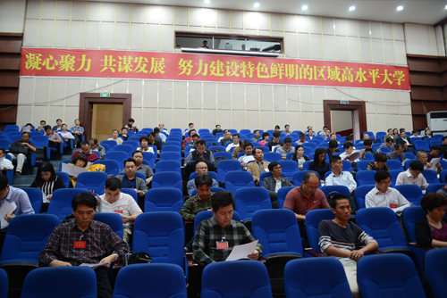 曾建平以《坚持改革创新,推动转型发展,加快特色鲜明的区域高水平大学建设步伐》为题,作二届七次教代会工作报告。曾建平首先对2015年及“十二五”工作进行了回顾。他说,2015年是“十二五”规划的收官之年,也是学校综合改革启动之年。一年来,在省委、省政府和省委教育工委、省教育厅的正确领导下,学校坚持以井冈山精神办学育人,坚持立德树人根本任务,坚持内涵式发展,坚持改革创新,各项事业取得新成效,各项工作有新亮点。一是人才培养质量进一步提升。二是学科科研水平进一步提高。三是师资队伍建设进一步优化。四是服务社会能力进一步增强。五是内部治理结构进一步优化。六是开放合作办学进一步扩大。七是民主办学进程进一步推进。八是和谐校园建设进一步落实。九是党建与思想政治工作进一步加强。