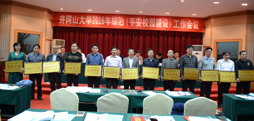 4月7日下午,学校召开综治(平安校园建设)工作会议。会议的主要任务是,贯彻落实上级关于校园安全稳定工作会议精神,总结工作,部署任务,全面推进平安校园建设,确保校园安全稳定。校党委书记彭涉晗讲话,校长曾建平主持会议,彭涉晗、曾建平向学校46个二级综治责任单位下发了《2016年度综治目标管理责任书》。党委副书记肖长春宣读2015年度学校社会治安综合治理工作先进单位和先进个人的表彰决定,副校长吕玉华作2016年学校综治(平安校园建设)工作报告,校领导桂国庆、史胜平、陈小林、肖宜安出席。13个综治工作先进单位,3个安全教育先进单位,26名先进个人受到会议表彰。