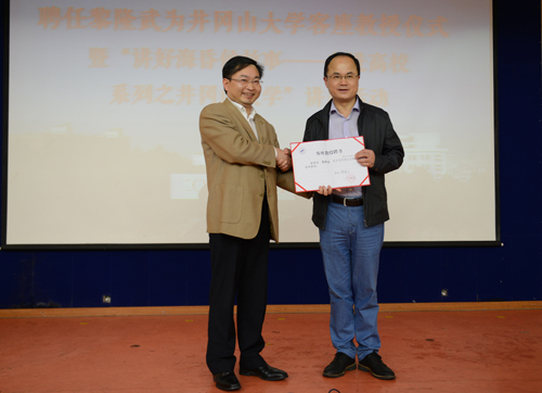4月14日下午,学校举行仪式,聘请江西省委宣传部副部长黎隆武为我校客座教授。校党委书记彭涉晗会见了黎隆武,校长曾建平为黎隆武颁发了聘书,受聘仪式由校党委副书记肖长春主持,副校长肖宜安和部分师生代表参加。 黎隆武是江西九江人,曾任上饶市副市长、公安局长等职务。黎隆武工作之余,钟爱历史文化研究,热心文学创作,尤其在秦汉历史文化研究方面造诣颇深,发表过不少作品。他出版的著作《千古悲催帝王侯——海昏侯刘贺的前世今生》,是我国首部关于海昏侯刘贺的历史纪实文学作品,被誉为海昏侯刘贺原创第一书。