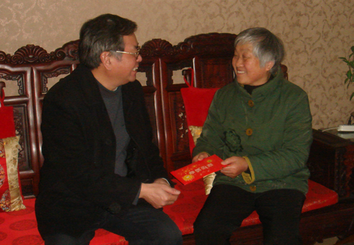 1月8日,校领导彭涉晗、曾建平、肖长春、桂国庆、王伴青、吕玉华、史胜平、陈小林,在有关部门和单位负责人的陪同下,分别走访慰问了学校的厅级离退休干部、离休干部、重病和生活困难职工、教师代表、抗美援朝老战士、伤残军人、民主党派和无党派人士代表等共 52人,向他们送去了新春的祝福。 每到一处,校领导详细询问慰问对象及家人的身体和生活状况,充分肯定并感谢他们为学校发展所做的贡献,祝愿大家在新的一年里身体健康、工作顺利、万事如意。校领导还简要介绍了学校今年将要做的一些工作,听取了各位老领导和专家学者对学校发展的建议,希望他们一如既往的支持和帮助学校各项事业发展。校领导向慰问对象一一送上了慰问金。