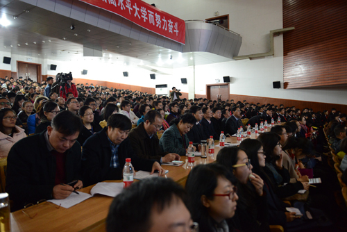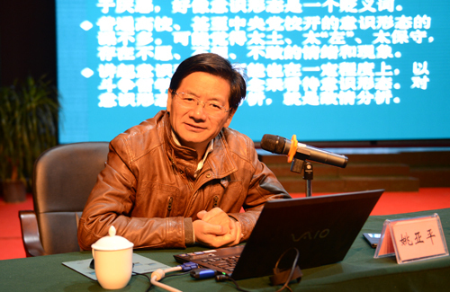 11月27日上午,江西省委常委、宣传部长姚亚平来校作《当前我国意识形态工作的特征、挑战和任务》形势与政策报告。校党委书记彭涉晗主持报告会。省社科院党组书记姜玮,省社联副主席吴永明,吉安市委常委、宣传部长李庐琦,中央宣传部、国家教育部联合主办、井冈山大学承办的2015年全国高校思政课骨干教师研修班全体学员,校领导曾建平、肖长春、桂国庆、吕玉华、陈小林和副处以上领导干部,吉安市宣传思想文化系统负责人,我校师生代表等,共计1400余人聆听报告。 报告会上,姚亚平从思想认识、历史方位、全球视野、多元社会、网络管理、党性原则等方面,就我国当前意识形态工作的阶段性特征和主要任务等,进行了全面深入地阐述。他强调指出,意识形态工作是党的一项极端重要的工作。高校思想政治理论工作者要以我们正在做的事情为中心,要紧密联系实际学好马列主义,努力做好理论引导、理论斗争、理论研究、理论创新以及舆论引导工作,理直气壮地传播当代中国价值观和发展观,打好主动仗,塑造好国家形象,讲好中国故事,传播好中国声音。高校思想政治理论课要把学习习近平总书记系列重要讲话的分量加重,要抓住理想信念这个核心,用马克思主义中国化的最新成果武装干部群众和青年学生,积极做好凝心聚力的工作。宣传思想部门要把网上舆论工作作为宣传工作的重中之重来抓,使之成为先进文化的新阵地、公共文化服务的新平台和精神文化生活的新空间。