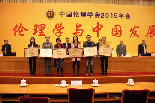 由中国伦理学会主办、清华大学、中国人民大学和我校等单位共同协办的2015年年会于12月4至6日在北京京西宾馆举行,年会的主题是“伦理学与中国发展”,中宣部副部长王世民出席会议并致辞。来自全国各地高校、各省市伦理学会和科研机构的500名专家学者参会,围绕伦理学与中国发展中的道德建设、核心价值观、慈善、慈孝、德性伦理等热点问题进行交流。我校与中国人民大学、清华大学等单位一起,成为中国伦理学会第一批“团体会员单位”。我校校长曾建平教授与中国伦理学会会长万俊人教授等五位知名专家,共同组成中国伦理学会第三次“知名专家对话会”嘉宾,就当前中外伦理热点问题,与各与会代表尤其是青年学者展开对话,现场气氛热烈。(马克思主义学院)