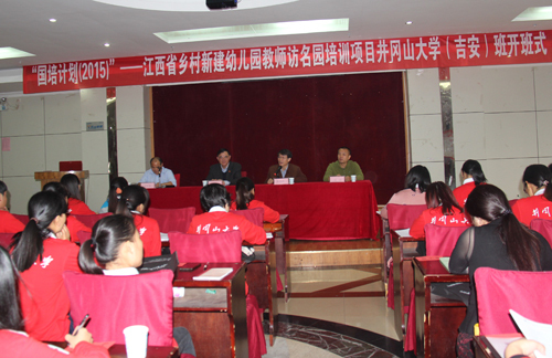 11月6日上午,“国培计划(2015)”江西省乡村新建幼儿园教师访名园培训项目井冈山大学班分别在校和鹭洲宾馆举行开班仪式,校长曾建平、副校长桂国庆分别出席开班仪式并致辞,来自吉安市12个县(市、区)和信丰、南康、崇义、东乡、黎川等5个县共180余名学员参加了开班式。 培训班分集中研修和访名园两个阶段进行。集中培训阶段采取专题讲座、观摩与评析、论坛、互动交流、实训等多种形式,突出教育理论素养、活动设计能力以提升教师的教学水平和教研能力。为确保培训的实效性,培训班为每一位学员配备了双导师。(教育学院)