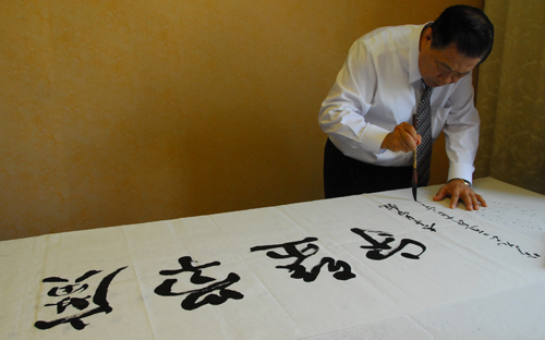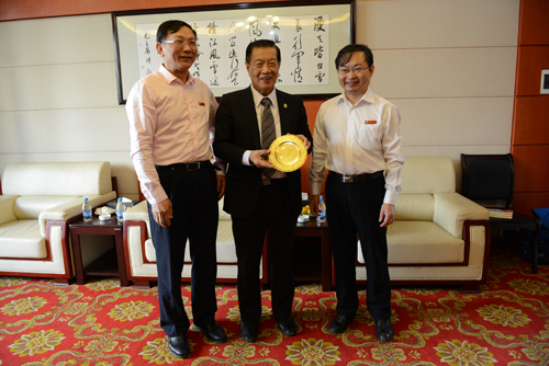 会谈后,李昌钰向学校赠送了他的著作,学校回赠了纪念品。校领导与李昌钰博士一行合影留念。临行前,李昌钰还即兴挥毫,题写了“广学坚守”赠送学校。