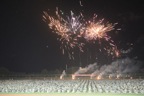 开学典礼结束时,现场还燃放了烟花,以此祝愿2015级全体新同学能够立足新起点,树立新目标,用生命中最宝贵的青春时光,谱写壮丽的人生篇章。