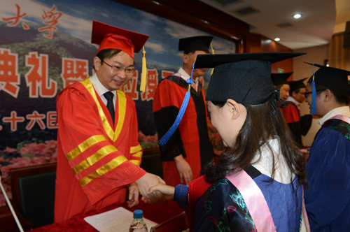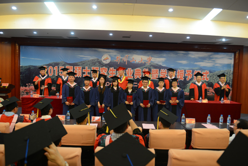 典礼结束后,校领导与毕业硕士研究生合影留念。