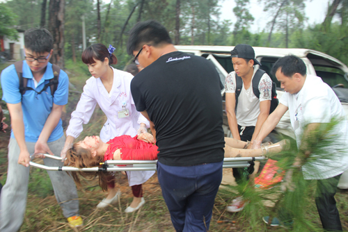 5月1日16时40分许,我校人文学院、商学院、机电学院、生命科学学院、艺术学院、体育学院、建筑工程学院等14名学生结伴徒步行走至319省道泰和县石山乡齐塘村附近路段时,大雨中一辆迎面驶来的面包车突然快速冲向马路一侧,在撞倒了2棵行道树、转了两圈后停下,同时一个婴儿从车窗飞出,落在了4米多外的马路上。 面对突然发生的车祸,大学生们不顾大雨,井然有序地开始了救援:有的跑向婴儿并为他打伞,有的照顾从毁坏的车门爬出、满脸是血的驾驶员刘先生,有的将受伤较重的妇女安全地从副驾驶座移出来,并找来硬纸板垫在她身下,有的拨打了120电话,有的又跑到马路边上拦车帮助救援,有的跑向附近农家请求救助。随后,大家一直撑伞为伤者挡雨,更为他们撑起了一顶生命的“救护伞”。