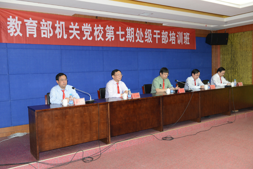 5月7日下午,以“学习党史、了解国情、发扬传统、锤炼作风、加强修养”为主题的教育部机关党校第七期处级干部培训班开班式在校举行。教育部机关党委组织部长郭宇光,省委教育工委副书记、教育厅副厅长喻晓社出席开班式并讲话,校党委书记彭涉晗为培训班授旗,校长曾建平致辞,校党委副书记肖长春主持,省教育工委宣传部长、省教育厅社政处长彭祖雄出席。教育部机关党校45名学员参加了开班式。 郭宇光代表教育部机关党校对培训班开班表示祝贺,对江西省委教育工委、省教育厅对培训班的关心和重视表示感谢,对井冈山大学为承办此次培训班所付出的辛勤努力表示感谢。郭宇光要求全体学员要明确任务,切实增强党性教育的自觉性,要挖掘内涵,切实增强党性教育的实效性,要端正学风,确保党性教育任务的圆满完成。
