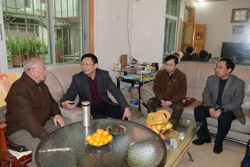 3月23日,校党委书记彭涉晗,校党委副书记、校长曾建平,校党委副书记肖长春,在有关部门负责人的陪同下,登门看望了范毅、何平、侯家团、傅美华、熊艺波、康泰、孙甦、金桂英等部分从学校领导岗位上退下来的副厅级以上离退休老同志,向他们致以亲切的慰问和诚挚的问候。学校老领导郭永勤、罗学渭因在外地,校领导委托有关部门负责同志转达了对他们的问候。 每到一处,校领导仔细询问离退休老领导、老同志的身体、生活状况,真诚地祝愿他们健康长寿,家庭幸福,对他们为学校事业发展所作出的积极贡献表示敬意。校领导还认真听取了老同志对学校建设与发展的意见和建议。校领导说,老同志是党和国家的宝贵财富,是学校事业发展的有功之臣,学校事业的每一步发展都凝聚着老同志的心血和汗水。老同志虽然从工作岗位上退下来了,但仍然为学校事业的发展建言献策,做出了积极的贡献。希望老同志保重身体,发挥余热,一如既往地关心和支持学校的建设与发展,为学校事业的发展继续贡献智慧和力量。