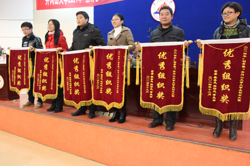 会上宣读了《关于表彰2014年“创青春”井冈山大学大学生创业大赛获奖作品、优秀组织单位及优秀指导老师的决定》,并介绍第十四届“挑战杯”大学生课外学术科技作品竞赛实施方案;优秀组织奖单位代表医学院副院长黄玉珊介绍了组织“挑战杯”竞赛活动的经验,指导老师代表商学院彭素琴老师和获奖团队代表商学院12国贸本1班朱莹同学分别发言。