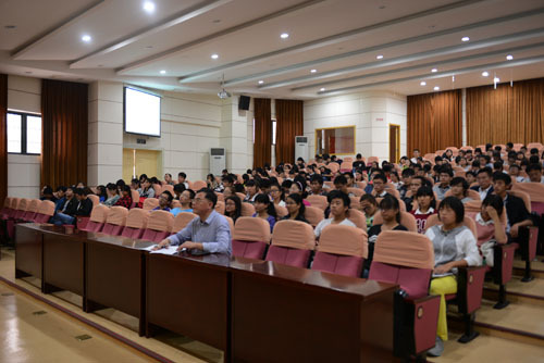 10月31日下午,九江学院校长甘筱青应邀来校为我校师生举办了一场题为“《论语》的公理化诠释——解读中华经典的新视野”的精彩讲座。副校长桂国庆主持讲座,我校师生300余人聆听了讲座。 甘筱青从中西文化差异角度着眼,就中西的交流方式、生活观念与人际关系三个方面为同学们详细阐述了不同意识形态的文明对接,突出当代中国主流与世界文化交流的儒学的核心价值。甘筱青还以公理化的方法诠释了《论语》,这对于人们准确地把握孔子思想,缓解当代中国民族复兴这一大背景下的精神文化发展所陷入的窘况有着其特有的意义。