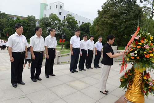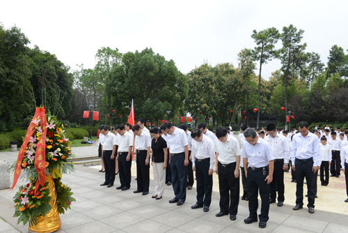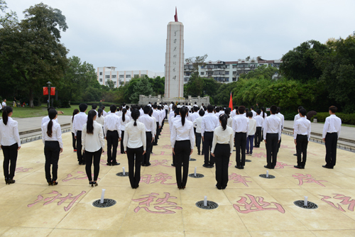 9月30日,是全国首个烈士纪念日,在家的校领导金桂英、桂国庆、王伴青、曾建平、肖长春、吕玉华、史胜平、张氢等,与师生代表一起来到吉安市白鹭洲公园革命烈士纪念碑前,隆重开展“追忆革命历史,传承红色基因”祭奠活动,以告慰忠魂,缅怀先烈,寄托哀思。青山绿水留浩气,苍松翠柏慰英灵。师生在革命烈士纪念碑前肃立默哀,敬献花篮,他们还将写有“追忆革命历史丰碑,弘扬传承红色基因”“革命烈士永垂不朽”“追忆革命先烈”,无限寄托与祝福的黄丝带,系在花篮上,表达了井冈学子对烈士的深切哀思和为实现中国梦而不懈努力的郑重诺言。 来自土家族的商学院阮海艳同学说:“先烈们用他们的鲜血,为我们创造了今天的美好生活,让我们有机会去为我们的未来奋斗,去为中国的未来奋斗,作为一名少数民族同学,我将永远铭记革命烈士的丰功伟绩。”商学院13级舒键同学说:“我们生活在井冈山大学,每天受到井冈山精神的熏陶,时刻为革命烈士的贡献精神所感染,我们要弘扬井冈山精神,象革命烈士那样不怕苦,不怕累,不怕死,艰苦奋斗,忠诚于党,热爱人民,报效祖国。”