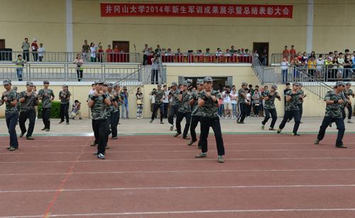 9月22日,2014级新生军训成果展示暨总结表彰大会举行,为期2周的新生军训工作圆满结束。校领导万继抗、金桂英、桂国庆、王伴青、曾建平、肖长春、吕玉华、史胜平,以及武警吉安市支队政委刘新、副参谋长周志强等出席,并为优胜连和优秀教员颁奖。万继抗代表学校向刘新赠送了锦旗,肖长春作总结讲话。 各学院新生方队代表和武警吉安市支队军训教官们分别在大会上进行了精彩的会操表演。马克思主义学院、体育学院、外国语学院、教育学院、医学院、电子与信息工程学院被评为优秀连,29个班级被评为优秀排,31名教官被评为优秀教官。