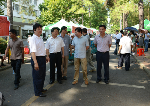 校领导万继抗、张泰城、金桂英、桂国庆、王伴青、曾建平、肖长春、吕玉华、史胜平等,在有关部门负责人的陪同下,到各学院报名点看望报到的新生及家长,慰问工作人员。在各新生报到点,校领导不时与新生及家长交谈,询问他们的报到手续办理情况,对他们旅途劳顿表示慰问。校领导还向迎新工作人员仔细询问新生报到情况,勉励他们热情周到细致地做好新生报到各项服务工作。