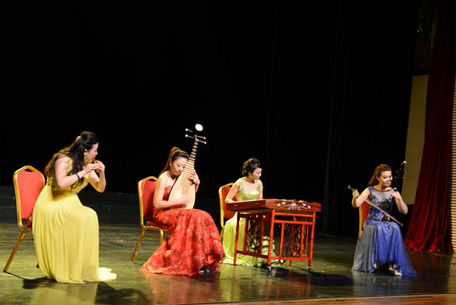 演出结束后,领导和嘉宾上台和中央音乐学院参演研究生合影留念。
