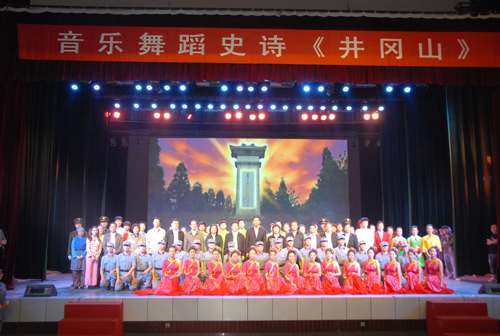 4月28日晚,音乐舞蹈史诗《井冈山》第150场教学演出在校隆重举行。中共中央党史研究室宣传教育局局长陈夕,教育部社会科学司司长张东刚,江西省委教育工委副书记史蓉蓉,中国井冈山干部学院副院长柯华,教育部高等学校社会科学发展研究中心主任、全国高等学校中国共产党革命精神与文化资源研究中心理事会秘书长杨河,教育部高等学校社会科学发展研究中心副主任赵军等出席观看。校长张泰城致词。出席观看的还有,教育部社会科学司规划处处长徐青森,教育部社会科学发展中心党建思政研究处副处长朱喜坤,江西省委教育工委宣传部部长、省教育厅社政处处长彭祖雄,井冈山大学副校长曾建平、肖长春。出席2014年高等学校中国共产党革命精神与文化资源研究中心基地主任联席会议和出席红色经典艺术教育与人才培养研讨会的专家学者:上海市委党史研究室、湖南省委党史研究室、江西省委党史研究室、贵州省委党史研究室、河北省委党史研究室负责人,中国井冈山干部学院、同济大学、复旦大学、嘉兴学院、湘潭大学、赣南师范学院、遵义师范学院、延安大学、河北师范大学、江西师范大学、井冈山大学附属艺术学校、吉安师范学校,以及江西省音乐家协会、吉安市文联、吉安市音乐家协会等有关领导和专家,与学校1500名师生一起观看演出,接受了一次生动的井冈山精神教育。 张泰城在致词中说,音乐舞蹈史诗《井冈山》是中国井冈山干部学院、同济大学、井冈山大学联合创编的一台节目。创编这台节目,一是教学方式的改革,二是人才培养方式的改革,三是为了传播井冈山精神。我们认为,在新时代传承和弘扬井冈山精神,是井冈山大学的责任和使命。