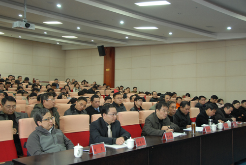 1月9日,全省高校人文社科科研管理研究会2013年度工作会在校召开。教育部社科司规划处处长徐青森应邀出席,省委教育工委、省教育厅社政处处长彭祖雄主持会议。校长张泰城出席,副校长曾建平致辞,校纪委书记史胜平,校长助理张氢出席,与会领导和嘉宾为全省高校哲学社会科学发展论坛2013征文获奖者颁奖。来自全省高校的优秀论文获奖代表和相关科研管理专家近百人参加了会议。