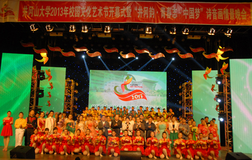 11月23日晚上,2013年校园文化艺术节开幕式暨“井冈韵·青春志·中国梦”诗音画情景晚会隆重举行,校领导万继抗、金桂英、肖长春、张氢以及团市委领导出席。肖长春致辞,校团委负责人主持开幕式。