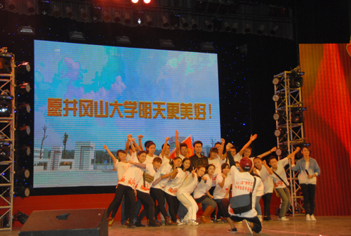 开幕式后,出席开幕式的领导和嘉宾以及全校师生1500余人观看了演出。演出分庐陵古韵、红色热土、绿色之梦三个篇章,主题突出、内涵丰富,配合以现代声光电高科技技术,既有精美绝伦的视觉效果,更有震撼人心的感染力和冲击力,再加上场内场外数千名微博粉丝互动,把演出一次次推向了高潮。晚会结束后,校领导和嘉宾走上舞台接见参演大学生并合影留念。