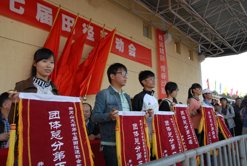 10月25日下午,为期三天的运动会圆满结束。在校的领导万继抗、张泰城、桂国庆、肖长春、吕玉华、张氢出席了闭幕式,各学院和部门主要负责人在主席台就座。肖长春致闭幕词,并宣布井冈山大学第七届田径运动会闭幕。18个学院的运动员代表列成整齐的方阵,接受了校领导的检阅。 本届运动会上,电子与信息工程学院获普通专业组团体总分第一名,医学院、生命科学学院、人文学院、政法学院、商学院分获二至六名;12级运动训练班荣获体育专业组第一名,11级运动训练班、13级运动训练班、13级体育教育(1)班、13级体育教育(2)班、12级体育教育(1)班分获二至六名;生命科学学院荣获教工组团体总分第一名,机关第二总支部代表队、电子与信息工程学院、医学院、数理学院、建筑工程学院分获二至六名;马克思主义学院、外国语学院、建筑工程学院、化学化工学院、教育学院、临床医学院荣获体育道德风尚奖;国防生学院、体育学院荣获体育道德风尚特别奖;电子与信息工程学院、政法学院、生命科学学院、人文学院、艺术学院、医学院、护理学院荣获组织奖。