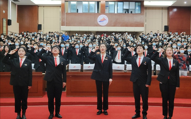 “我宣誓,我们将做到,坚定不移听党话、跟党走……”主题宣讲结束后,五位主讲人带领全体同学共同许下青春的誓言,展现了井冈学子在新时代浪潮中,勇立潮头,保持着追理想、敢担当的优良品质。