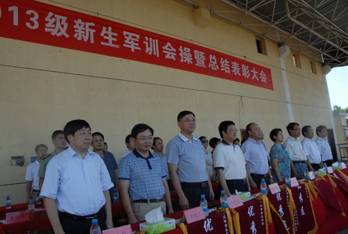 9月18日下午,2013级新生军训会操暨表彰大会举行,为期2周的新生军训工作圆满结束。校领导万继抗、张泰城、金桂英、桂国庆、王伴青、曾建平、肖长春、吕玉华、史胜平出席,并为优胜连和优秀教员颁奖。张泰城宣布新生军训工作结束,肖长春作总结讲话。 各学院新生方队代表在大会上进行了精彩的会操表演。护理学院、医学院、生命科学学院、政法学院、教育学院、机电工程学院、建筑工程学院被评为优秀连,体育学院被评为优胜连,16个班级被评为优秀排,28名教官被评为优秀教官。