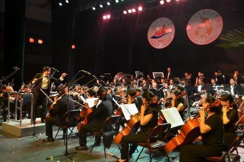 井冈山大学大学生合唱团成员在乐团的协奏下,演唱了《鉴真东渡》、《欢乐颂》、《友谊地久天长》。