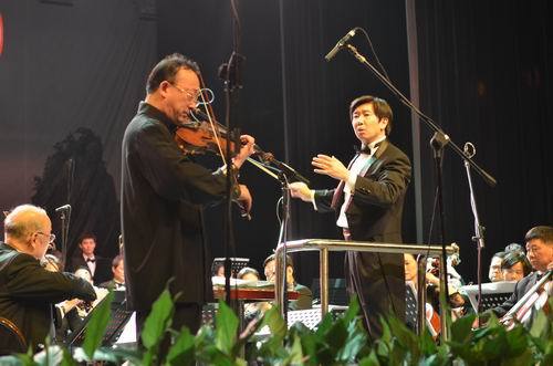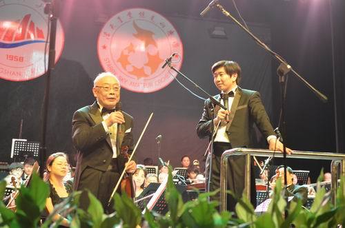 当第一支曲目结束,指挥夏小汤先生现场介绍了小提琴手、83岁的中国科学院力学所研究员、中科院院士吴承康。吴承康是为我国“两弹一星”工程作出过卓越贡献的顶尖高温气体力学家。精神矍铄的吴老说,自己中学时期与音乐结缘,积极参加学校的文艺演出活动,练习演奏小提琴,从此科学与艺术在自己的人生中就再也无法分开。他说,做研究和演奏一样,都讲究精益求精、全神贯注;乐队是一个团队,需要听从指挥、密切配合,科研也需要这样的团队精神。