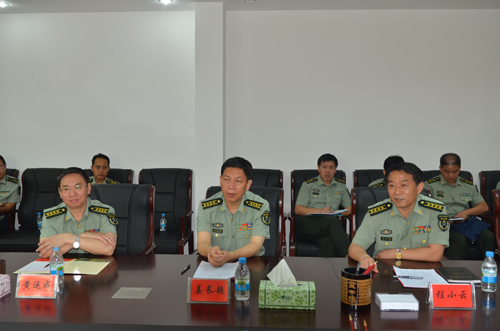 6月20日上午,吉安市委常委、军分区党委书记、政委黄运成,吉安军分区司令员姜长超,参谋长程小云,在青原区武装部领导陪同下,来我校商讨如何做好今年夏季的在校生义务兵征集工作,党委书记万继抗主持召开座谈会,校长张泰城,党委副书记、纪委书记金桂英出席,副校长肖长春介绍了我校历年的征兵工作情况以及2013年征兵工作打算。 吉安军分区领导介绍了今年夏季的征兵政策和征兵工作要求,表示部队积极鼓励在校大学生报名参军,投身国防建设,同时感谢学校对征兵工作的重视与支持,并表示军分区将积极配合学校解决征兵过程中遇到的困难和问题。