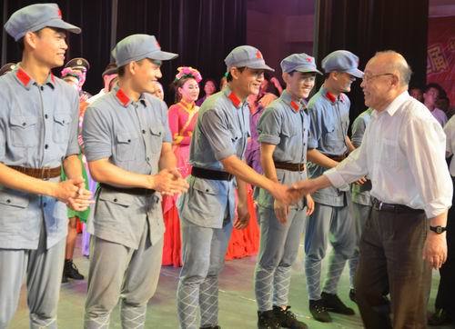演出结束时,叶小文、吴承康、郭奕珊、万继抗、张泰城等走上舞台,接见参演大学生并祝贺演出圆满成功。
