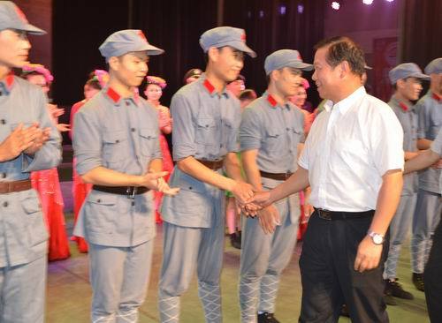 6月29日晚,音乐舞蹈史诗《井冈山》在校学生会堂举行专场演出,中央社会主义学院党组书记、第一副院长叶小文,中国科学院力学所研究员、中科院院士吴承康,全国政协委员、中国交响乐团乐队首席、国家一级演员刘云志,中央音乐学院副教授、中国青年交响乐团首席指挥、中国爱乐乐团常任指挥夏小汤,南昌大学教授解路军等满天星业余交响乐团45名成员观看了演出。省教育厅副厅长郭奕珊,省教育厅体卫艺处处长曹连平也观看了演出。校领导万继抗、张泰城、金桂英、桂国庆、王伴青、曾建平、肖长春、吕玉华等陪同观看。演出前,张泰城发表了热情洋溢的致辞。我校1500余名大学生也观看了演出。这是节目公演以来的第143场演出。