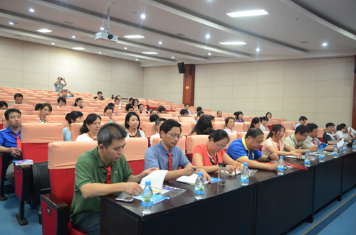 6月18日下午,中国科学院京区党务纪检干部“弘扬井冈山精神,坚定理想信念”培训班开班式在我校举行。校长张泰城为培训班全体学员授旗,中国科学院京区党委组织部部长杨旭和副校长曾建平分别致辞,培训学院院长李忠主持,培训班全体学员80多人参加了开班式。 开班式后,校长张泰城为全体培训班学员做教学导言,当晚,作为培训班的教学内容之一,培训班全体学员还观看了音乐舞蹈史诗《井冈山》。
