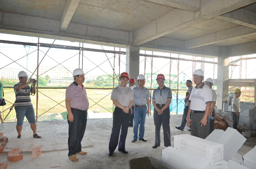 6月18日下午,吉安市政府副巡视员李建国来校考察医学院楼群工程建设情况。校长张泰城会见了李建国,副校长王伴青向李建国介绍了医学院楼群工程建设情况。李建国在王伴青和基建处负责人等陪同下到实地察看了工程建设情况。 医学院建筑楼群包括医学院专业教学楼、专业实验楼和综合楼共八栋,总建筑面积48801平方米,主要满足医学、护理、生命科学类各个专业理论教学、办公、学术交流、科研教学等需要。项目分两期建成,一期工程预计今年年底可竣工验收。
