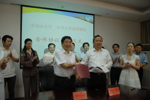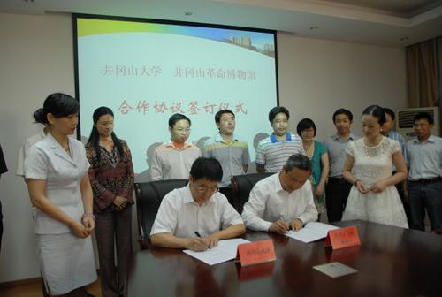 5月24日,学校与井冈山革命博物馆举行了签约仪式。校长张泰城出席、副校长曾建平主持。张泰城和井冈山革命博物馆馆长肖邮华分别代表双方签订了合作协议,有关部门和学院负责人参加了仪式。 张泰城在签约仪式上介绍了学校的基本情况,着重介绍了人才培养、服务社会、科学研究以及文化传承与创新等方面的基本情况。张泰城指出,井冈山革命博物馆是宣传井冈山精神和对广大青少年进行爱国主义教育与革命传统教育的重要阵地,研究井冈山以及弘扬井冈山精神也是学校应尽的社会责任,学校愿意和井冈山革命博物馆发挥各自资源优势,共同合作,为研究井冈山和弘扬井冈山精神作出更大的贡献。