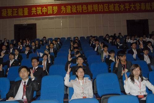 4月21日上午,共青团井冈山大学二届二次代表大会圆满完成各项预定议程,胜利闭幕。会议通过了《共青团井冈山大学二届二次代表大会关于2010—2012年团委工作报告的决议》,会议选举了李泉等25名同志为新的共青团井冈山大学第二届委员会委员,副校长肖长春以及党委组织部部长邱峰出席,李泉主持,肖晓致闭幕词,王岩同学宣读了《实现中国梦,青春献祖国》倡议书,147名代表参加会议。 会议期间,全体与会代表不负全校2万多名团员和青年学生的重托,以高度的政治责任感和饱满的热情,充分行使民主权利,认真履行职责,畅所欲言,共谋发展大计。会议对我校三年来的团学工作取得的成绩给予了肯定,确定了我校今后几年团学工作的主要任务和奋斗目标。会议号召各级团组织团结带领全校团员青年,坚定信念、开拓创新,为建设特色鲜明的区域高水平大学而努力奋斗,为实现中国梦奉献青春、智慧、力量。