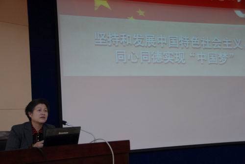 4月22日下午,在科级干部学习贯彻党的十八大精神培训班开班式结束以后,党委副书记、纪委书记金桂英为科级干部培训班作辅导讲座。党校常务副校长肖继仁主持。 金桂英的辅导报告题为《坚持中国特色社会主义,同心同德实现“中国梦”》,从中华民族光辉灿烂的历史破题,阐述了“中国梦”承载着中华民族光辉灿烂的千年回响,深刻分析了“中国梦”饱含着近代以来中华民族苦难的记忆和百年求索的艰辛,从而得出了中国特色社会主义道路是实现“中国梦”唯一正确的道路的结论。金桂英结合学校实际,要求全校科级干部大力弘扬井冈山精神,顽强拼搏,办好人民满意的教育,为实现“中国梦”而努力奋斗。
